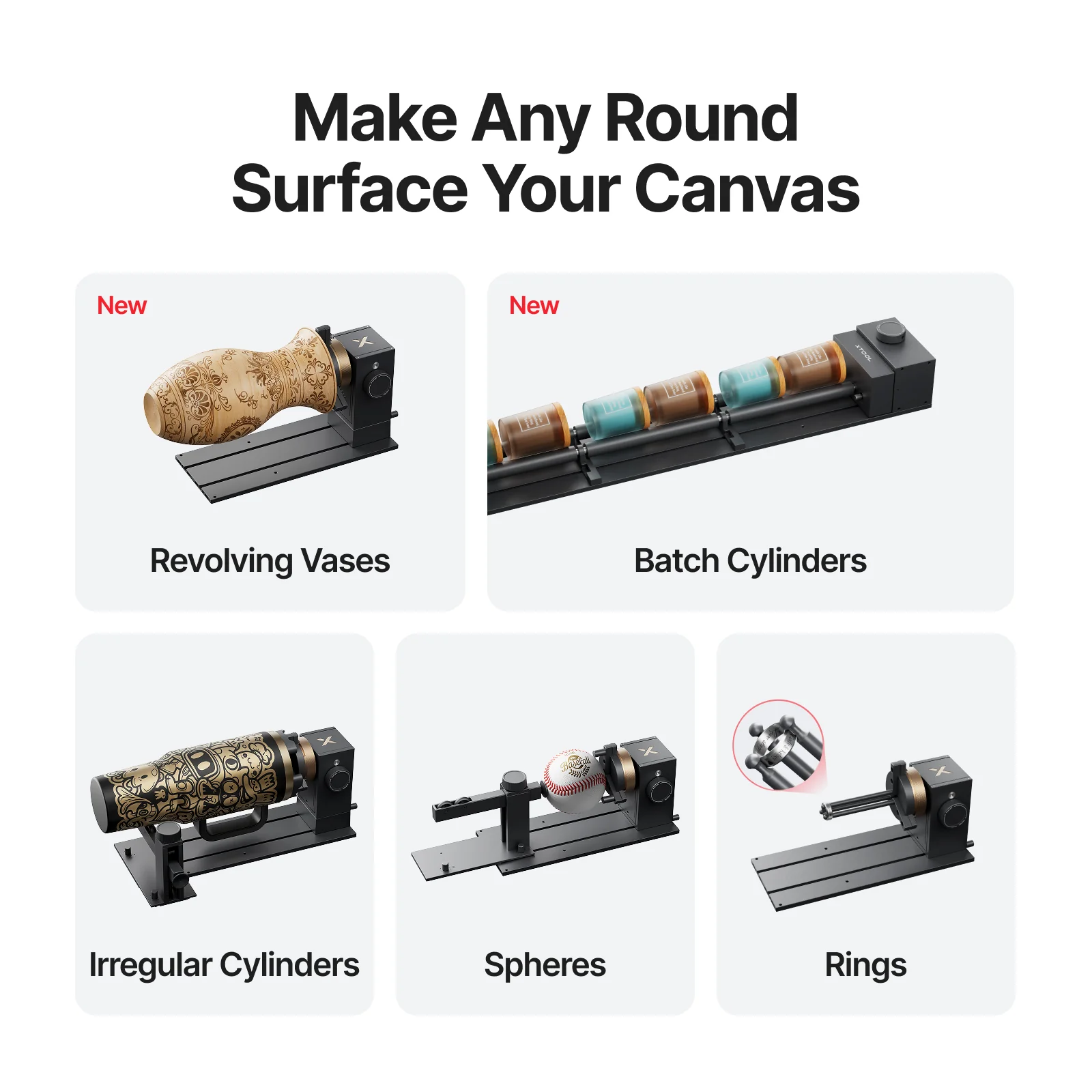 Le xTool RA3 est le premier module rotatif MagSwap intelligent au monde. Il transforme presque toutes les surfaces rondes, ovoïde ou cylindrique en espace de création. Tout devient possible avec une précision remarquable.