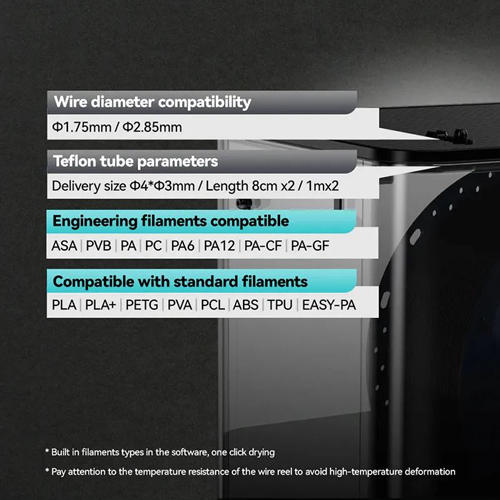 The SUNLU FilaDryer E2 is compatible with filament diameters 1.75mm and 2.85mm.