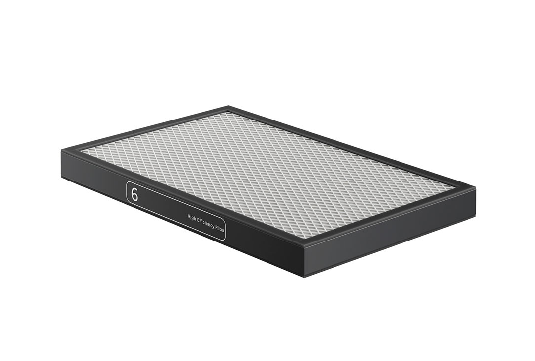 HEPA (High Efficiency Particulate Air) Filter filters 99.97% of dust at 0.3µm.